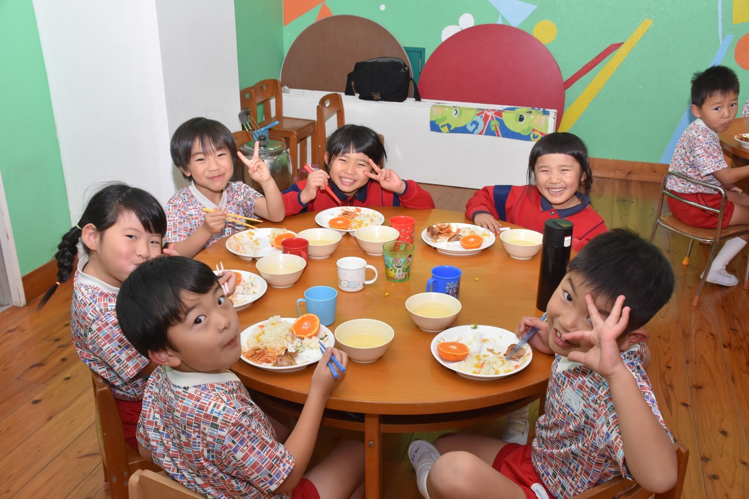 「食」は子供たちが豊かな人間性をはぐくみ、生きる力を身に付けていく。何よりも子供たちの体と心の健康を保つのに役立つ食物をおいしく、たのしく食べることににより、健やかな育ちの場を提供していきます。